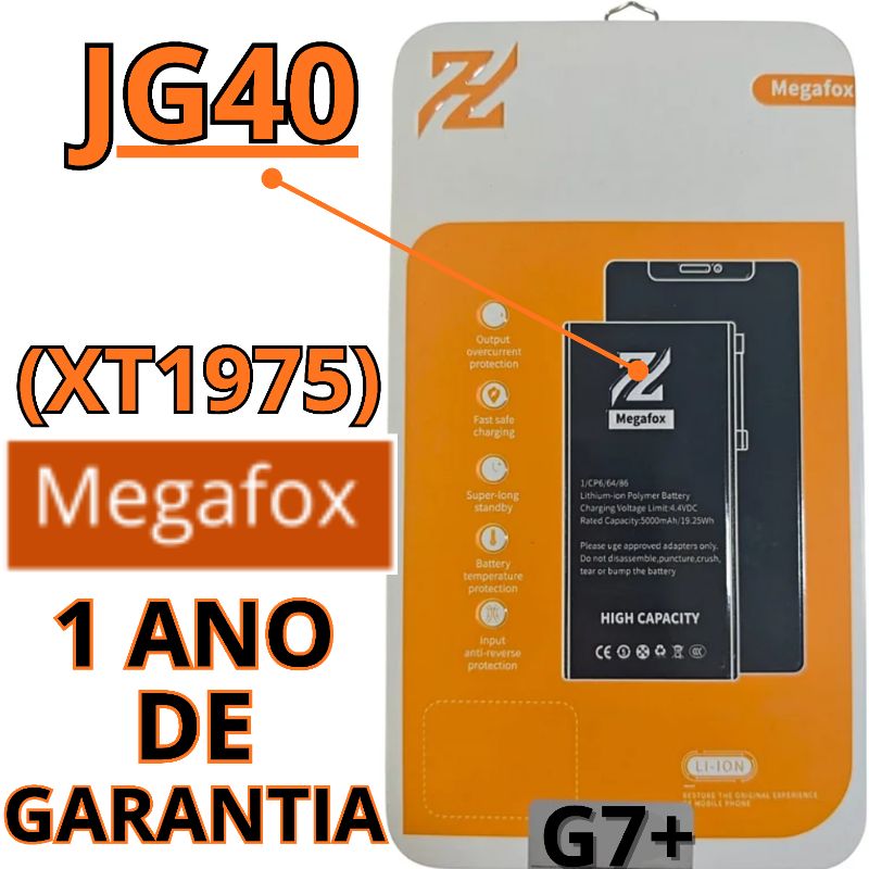 BATERIA MEGAFOX MOTOROLA MOTO G7 PLUS (XT1965) (JG40) (1 ANO DE GARANTIA)